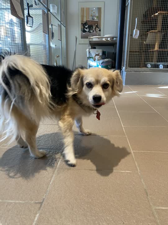 Micha er sød og venlig overfor andre hunde og kan med katte når han lige har lært dem at kende.