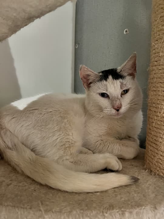 Søde Bolette kom ind på internatet og så ud som om hun har levet et hårdt liv. Hun er sød, kælen og meget rolig. Her på internatet viser hun ingen interesse for de andre katte. Hun leder efter et roligt hjem med masser af nus og kærlighed, for det fortjener hun.