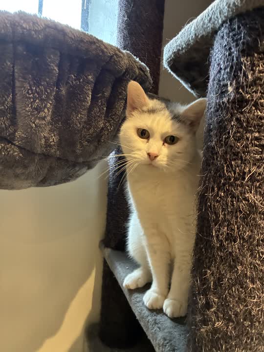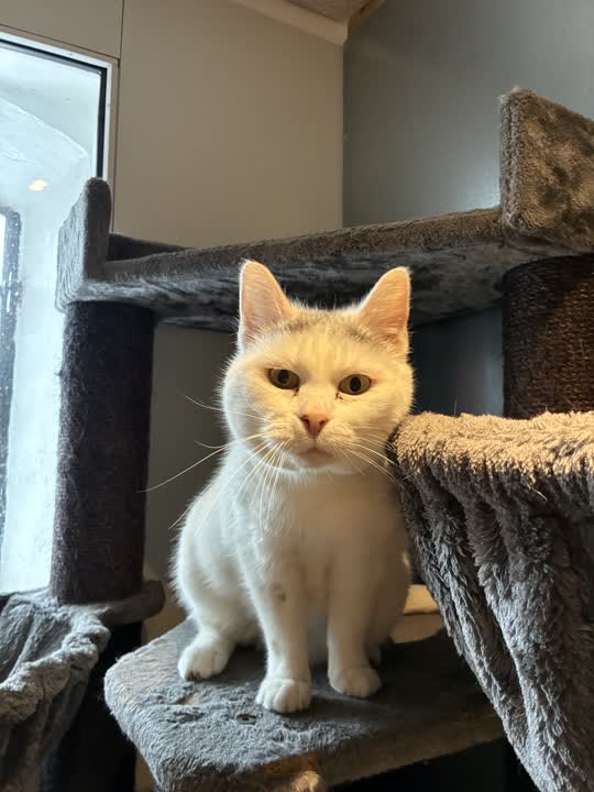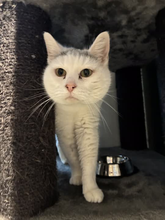 Snehvide skal i et hjem uden andre katte og uden hund. Hun er en kærlig kat, der godt vil kunne bo sammen med børn.