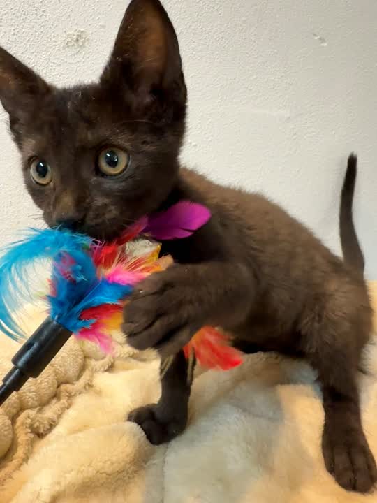 Mød Gizmo – en lækker sort charmetrold med krudt i rumpen og masser af kærlighed i hjertet. Han kom i pleje som 16 uger gammel og fandt sig straks til rette blandt de andre killinger, husets labrador og plejefamiliens unge beboer. Han har hilst på gæster, charmet dem alle – og endda haft et lille “vinduesmøde” med naboens store sorte hankat.