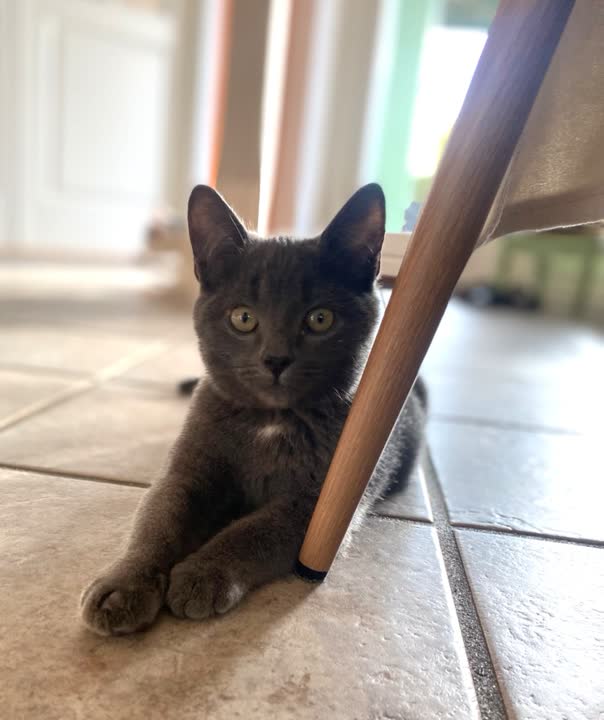 Han har endda opfundet sin helt egen leg: at springe langt og elegant for at lande direkte på et skød, hvor der så kan nusses mave (den lille, runde én!) – hvorefter han springer videre for at gentage succesen.