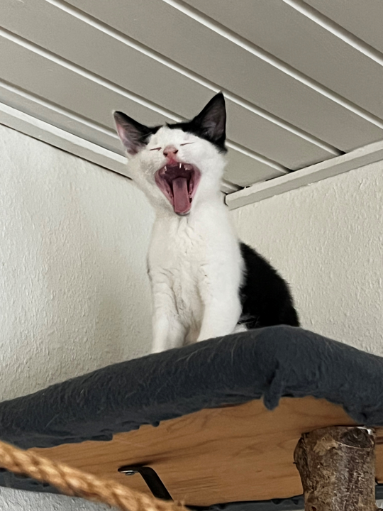 Sofus kom til os som helt lille killing, med strittende og silkeblød pels. Nu er han vokset op til en skøn ung kat, der er klar til sit næste store skridt i livet. Hans pels er stadig noget helt for sig – lidt krabbekrøllet, blød og charmerende, præcis som Sofus selv. 💛
