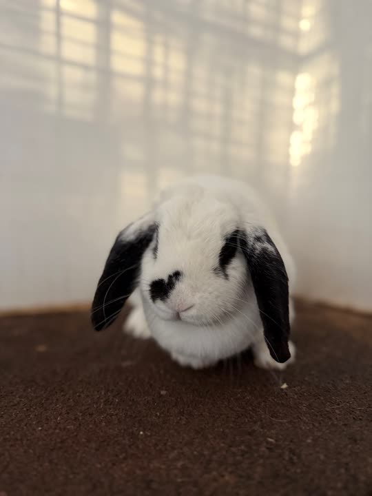 Hun er en sød og rolig kanin, som tydeligt er vant til at være i hænder – det kan man mærke, når hun søger kontakt. Hun er nysgerrig og kommer gerne hen for at hilse, og hun elsker at udforske sine omgivelser.