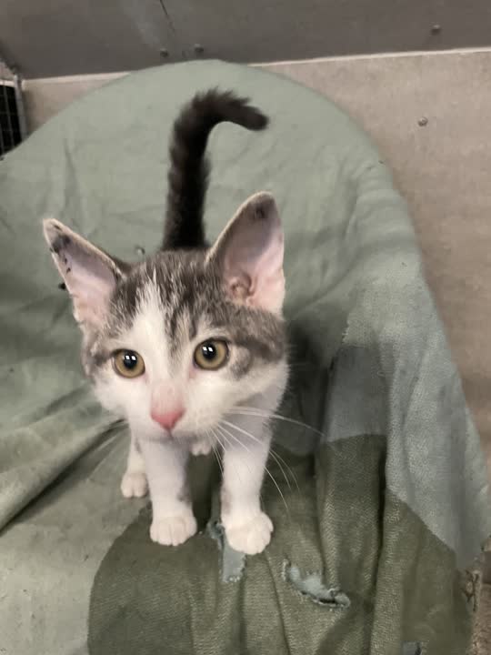 Sky er en venlig og nysgerrig lille fyr, der hurtigt vil varme op til dig og trives i et hjem, hvor han kan få masser af opmærksomhed og leg.