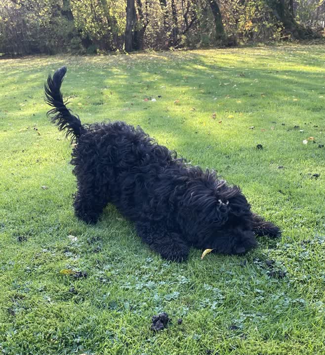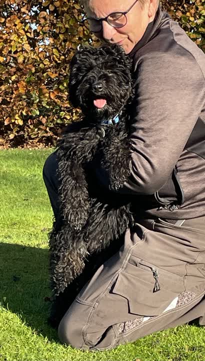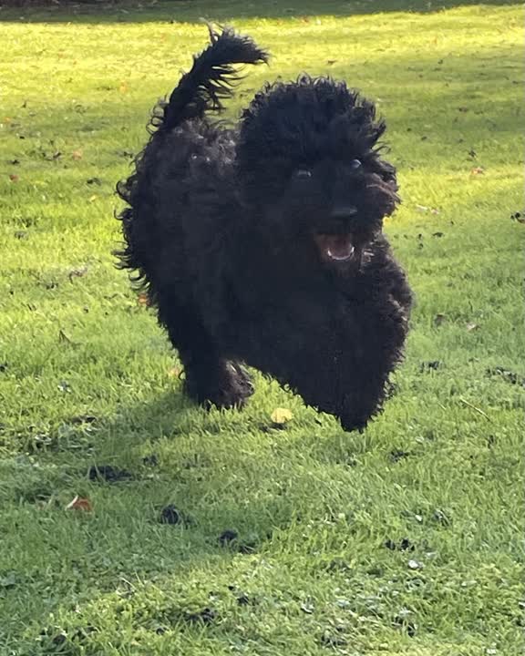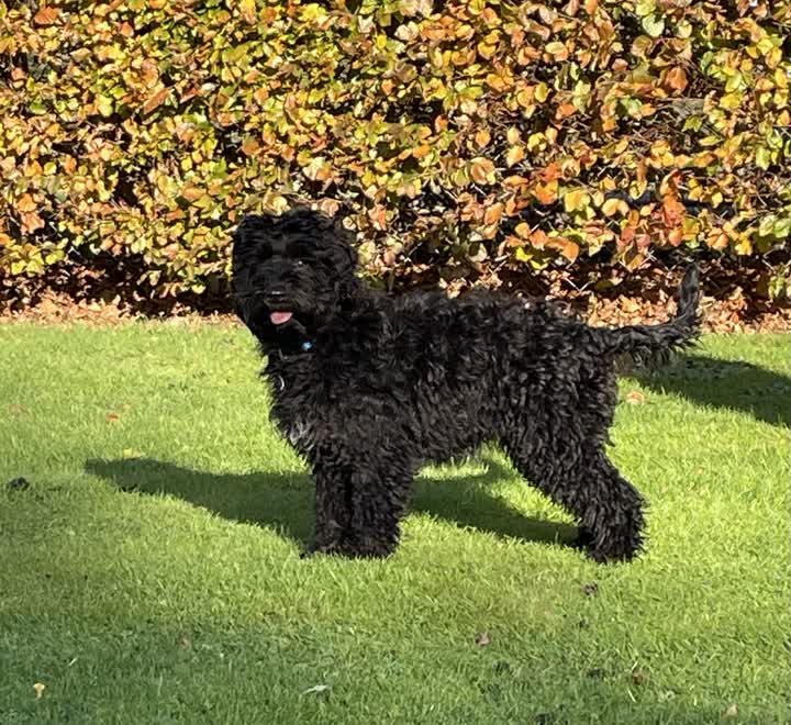 Luna er en lille puddelblanding fra juli i år, og hun er på alle måder en klassisk hvalp lige efter bogen – glad, energisk og sprængfuld af kærlighed, nysgerrighed og iver. Hun er en hund, der møder verden med store øjne og et åbent hjerte, og som tager imod hver dag med logrende hale.