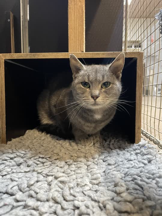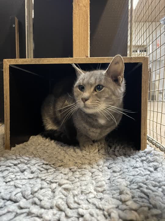 Margit kom ind til os efter en situation, der minder om den, vi har set hos flere andre katte – en usikker hverdag, hvor hun ikke længere kunne blive. Hun ankom sammen med fem andre katte, og det hele har været en stor omvæltning for hende. Alligevel tager hun tingene i et roligt tempo og viser små fine glimt af tillid.