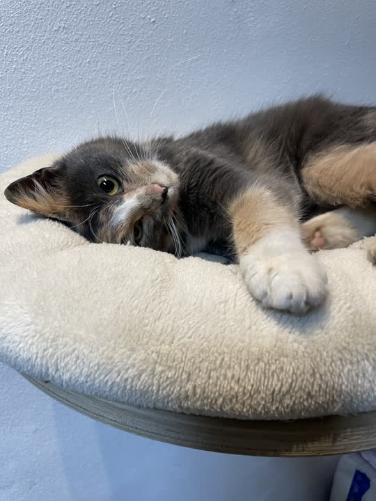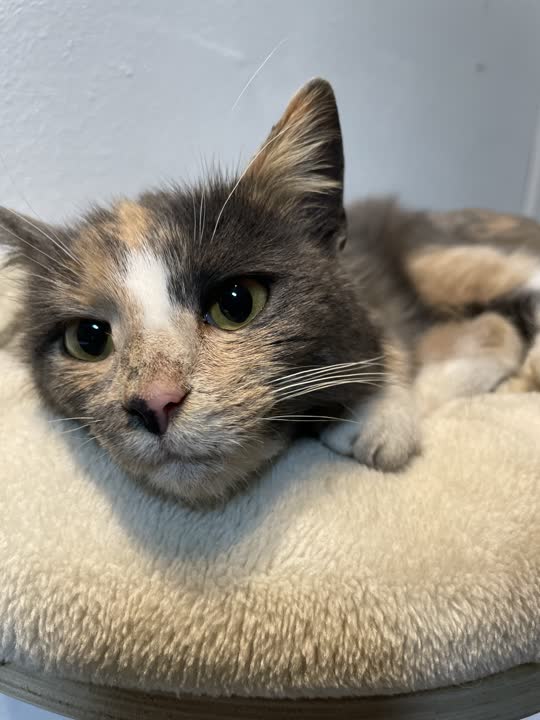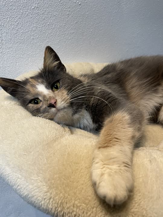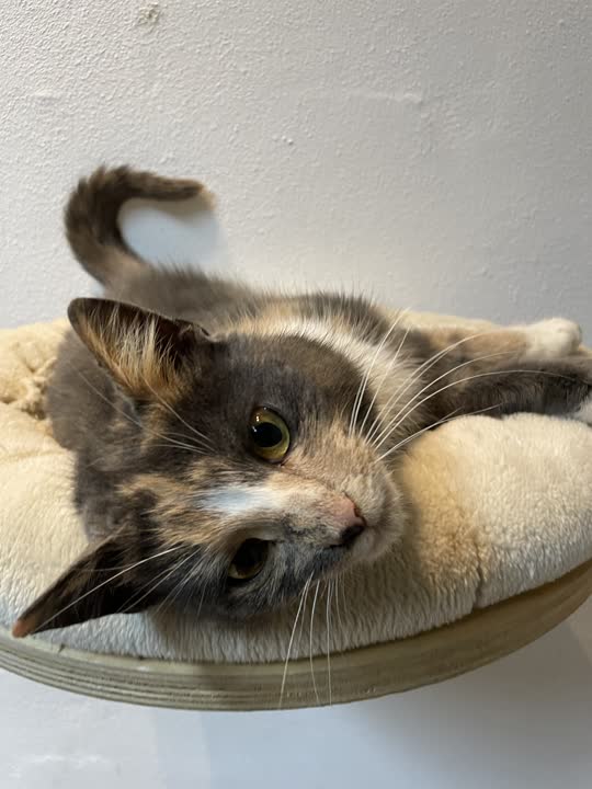 Dust er en smuk hunkat i bløde, dæmpede trefarver og med et hjerte fyldt af kærlighed. Hun er en mild sjæl, der møder verden nænsomt og med en rolig tilstedeværelse, som smitter.