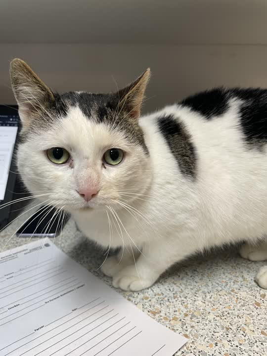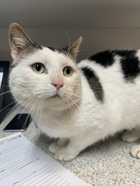 Ink er en kærlig hankat med de flotteste mønstre i hvid, sort og grå – og ikke mindst nogle helt fantastiske, lysende grønne øjne 💚 Han er typen, der søger fællesskabet og nærheden hos sine mennesker og gør det med stor tillid og varme.