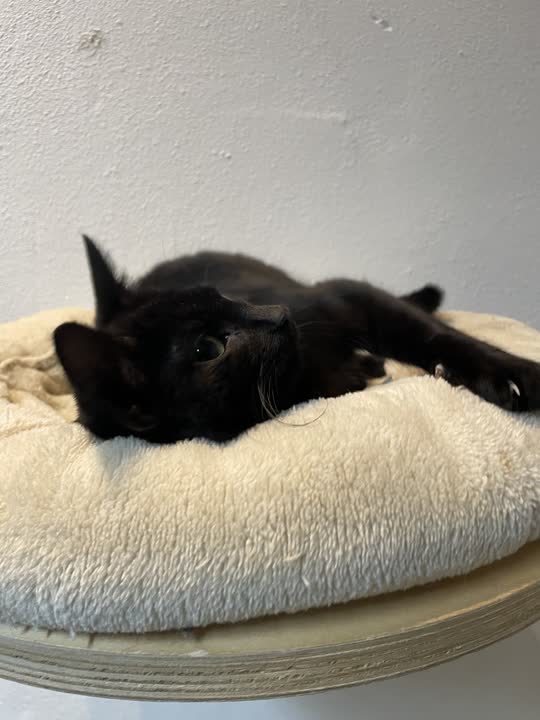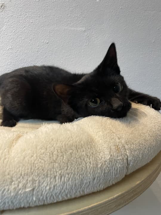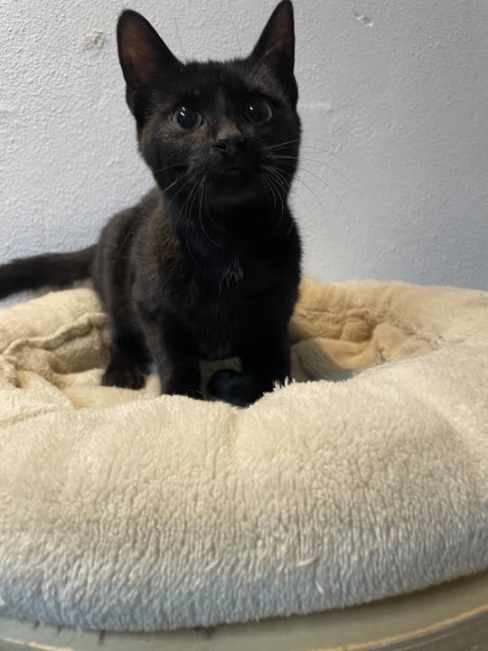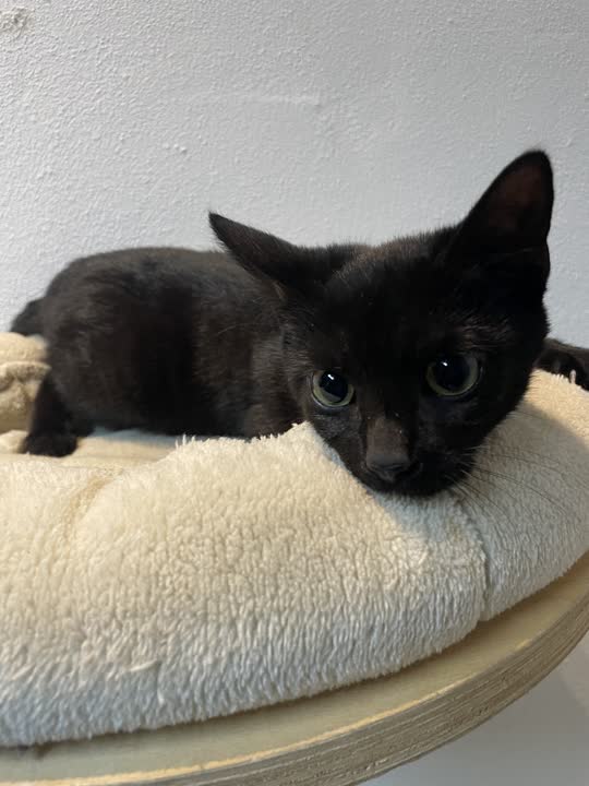 Sora er en fin lille hunkilling i sort, med et roligt og blidt udtryk. Hun kommunikerer med kærlige bevægelser og små lyde, som hurtigt afslører hendes behov for nærhed og tryghed. 💕