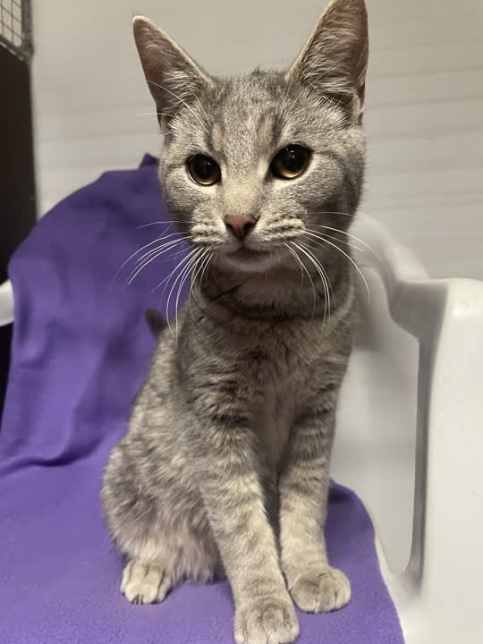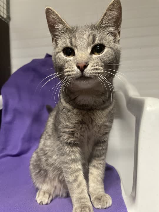 Sunny er en smuk, lysende gråstribet kat med et roligt, tillidsfuldt og nysgerrigt sind. Han møder verden med bløde øjne og en venlig tilgang, og det er tydeligt, at han har masser af kærlighed at give.