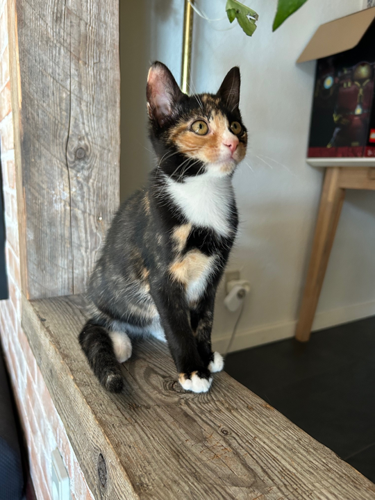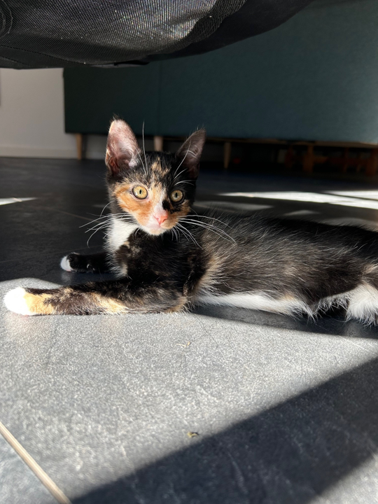 Vi ser gerne at Rosa på sigt kommer ud, når hun er gammel nok, og faldet godt til. Kan med børn, Sidder med andre katte her hos os.