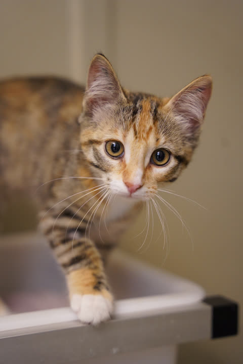 Frit er ikke så vild med at køre bil, så et hjem med rolig hverdag og begrænset transport vil passe hende godt. Hun vil trives med masser af leg og aktivering – klatremuligheder, foderlege og daglige legeaftaler. Når hun bliver gammel nok og er faldet til, skal Frit have mulighed for at leve som både inde- og udekat i sikre, rolige omgivelser.