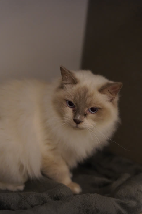 Mød søde Chibi, mor til killingerne. Chibi er en kærlig og blid, men også en bestemt dame. Hun elsker at blive kløet på hagen og aet på maven, når man har hendes tillid. Hun er en samler og kommer ofte med gaver i form af legetøj som hun samler i fine bunker. Hun er meget nysgerrig og snakker en del, og så er hun meget glad for at lege. Chibi søger et roligt hjem u8den små børn og andre dyr. Meget gerne et hjem med voliere, så hun kan få lidt natur i næsen.