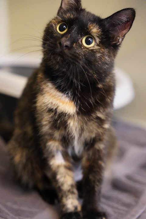 Mis Mis har været en fantastisk mormis for sine killinger og har taget sig omsorgsfuldt og tålmodigt af dem. Nu hvor killingerne er klar til egne hjem, er det blevet Mis Mis’ tur til at finde et roligt og trygt hjem, hvor hun selv kan være i fokus.