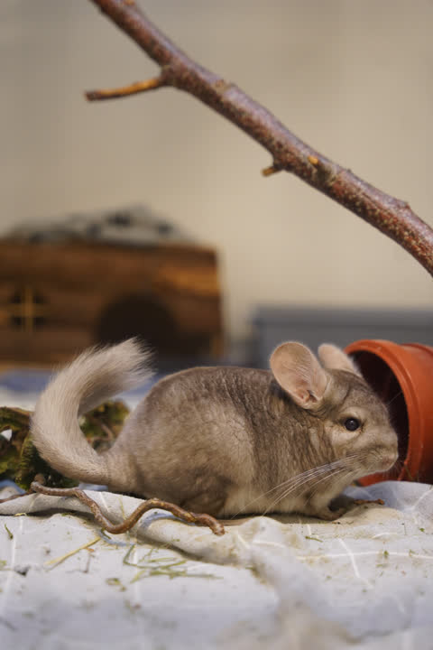 Balto er en chinchilla med krudt i benene og nysgerrighed i blikket. Han er meget opsøgende, social – og hurtig! Derfor søger han et erfarent hjem, der kender til chinchillers behov og kan tilbyde masser af plads, aktiv berigelse og sikre rammer.