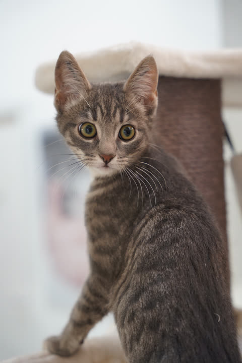 Når han føler sig tryg, viser han sin dejlige personlighed frem. Grey elsker at lege og nyder samværet med sine søskende, og han vil have rigtig godt af at få en katteven i sit nye hjem, som kan give ham tryghed og selskab.