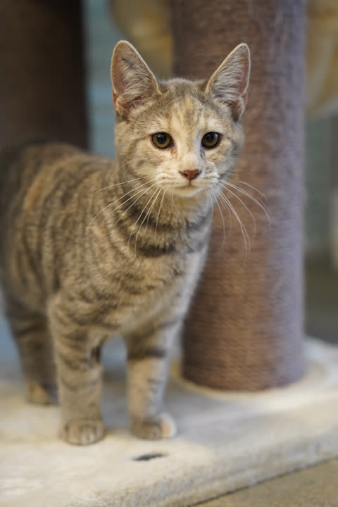 Jolene har været i pleje sammen med sine plejesøskende, hvor hun har fået en tryg og god start på livet. Hun er en sød og nysgerrig kat med masser af energi, som elsker at lege, udforske og være en del af det, der sker omkring hende.