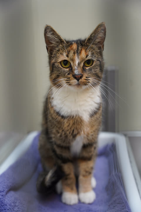 Olga kom til os som herreløs, men hun har hurtigt vist, at hun er tillidsfuld, rolig og utrolig kælen. Hos os trives hun med menneskelig kontakt, søger gerne selskab og vil passe ind i de fleste hjem, hvor hun kan blive en naturlig del af familien.