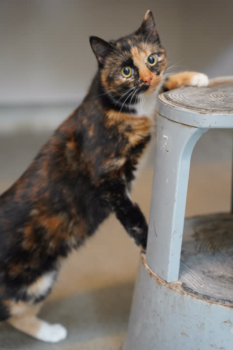 Mitte er en skøn og nysgerrig kat, der gerne vil følge med i, hvad der sker omkring hende. Hun er meget tillidsfuld og tager trygt imod kontakt og kærlighed fra sine mennesker.