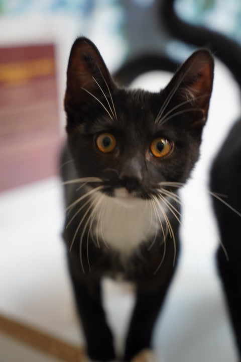 Bako blev – ligesom sine søskende – fundet dumpet i en papkasse på en parkeringsplads. Trods sin svære start på livet er han en utrolig sød og tillidsfuld hankat med masser af energi.