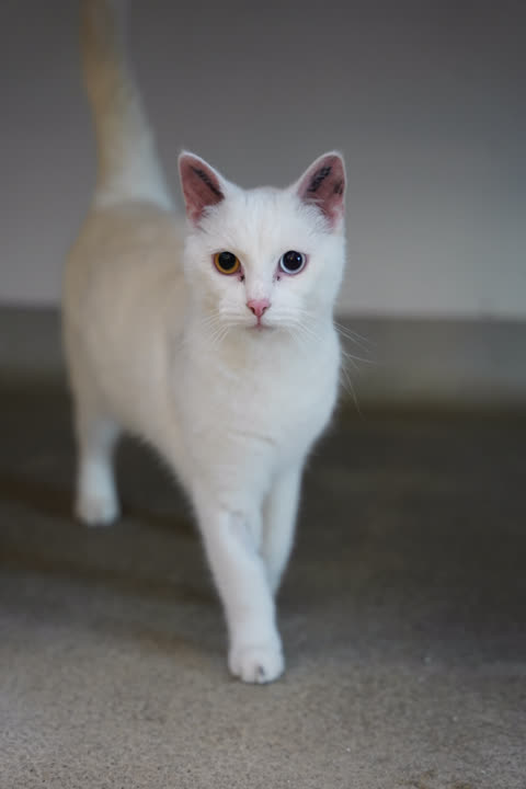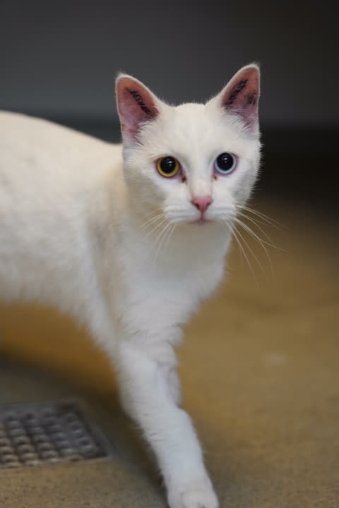 Ice kom til os som herreløs, og derfor kender vi desværre ikke meget til hans fortid. Det, vi til gengæld ved, er, at han er en utrolig smuk og helt unik kat med to forskellige øjenfarver. Hans blik fanger straks ens opmærksomhed!