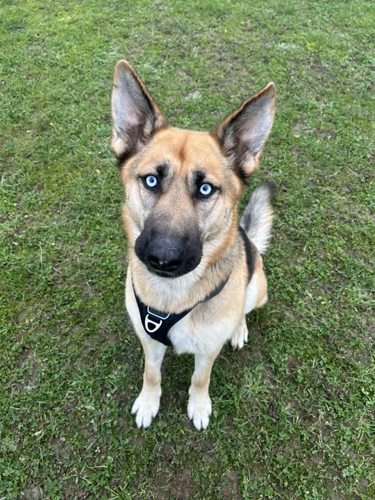 Mød Bella! En skøn og energisk 1 år og 4 måneder gammel Schæfer/Alaskan Malamute blanding, der er klar til at finde sit nye hjem.