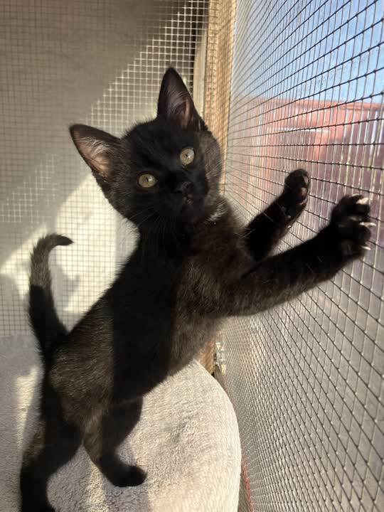 Muffin er steriliseret, chippet, øremærket og vaccineret. Hun skal kun til et hjem med adgang til en have. Hun er klar til at rejse fra internatet søndag d. 9. november.