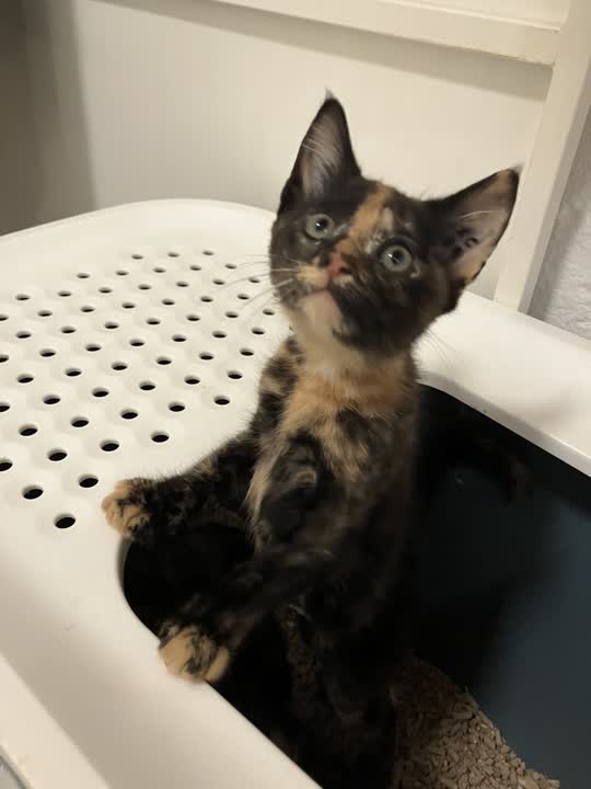 Amalie er steriliseret, chippet, øremærket og vaccineret. Hun skal kun til et hjem med adgang til egen have.