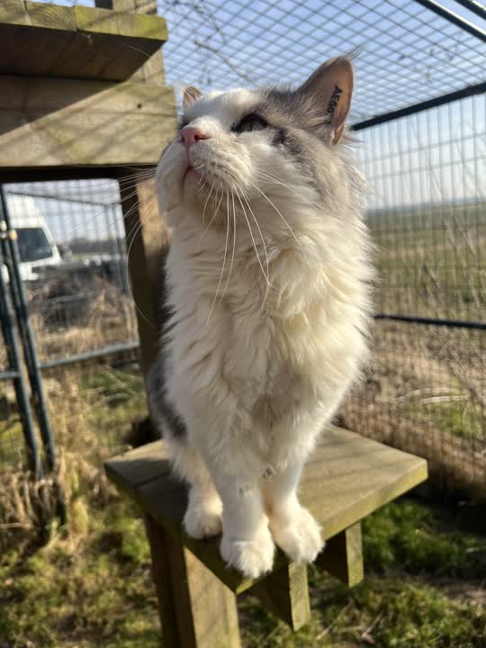 Theo er en skøn stor basse, da han kom ind havde han indadvendt øjenlåg som gav ham smerter og nedsat syn, dette er han blevet opereret for og nu er han en helt anden kat, han er utrolig opsøgende og ELSKER opmærksomhed, han er en stor kælepot og nyder at være omkring mennesker. Theo er en main coon og kræver pelspleje. Han skal have adgang til udeliv.