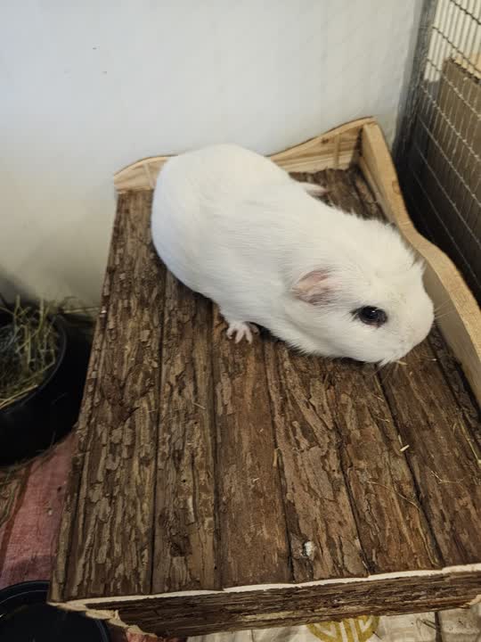 Frida er et sødt og lidt forsigtig marsvin. Hun er kommet ind sammen med sin mor Luffi , og skal også rejse sammen med hende.