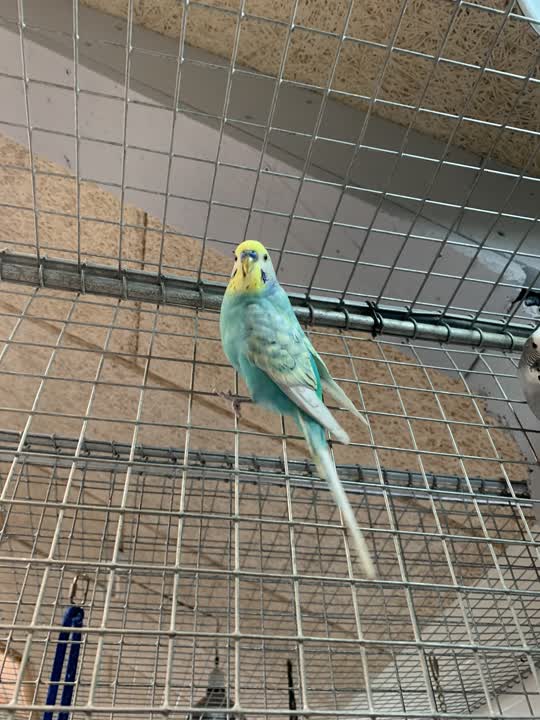 sød livlig undulat han, der søger et hjem med voliere, hvor han kan komme ud og strække vingerne udenfor. Han søger et hjem med artsfæller og kan evt. rejse sammen med en eller flere af de nye kammerater han sidder sammen med.