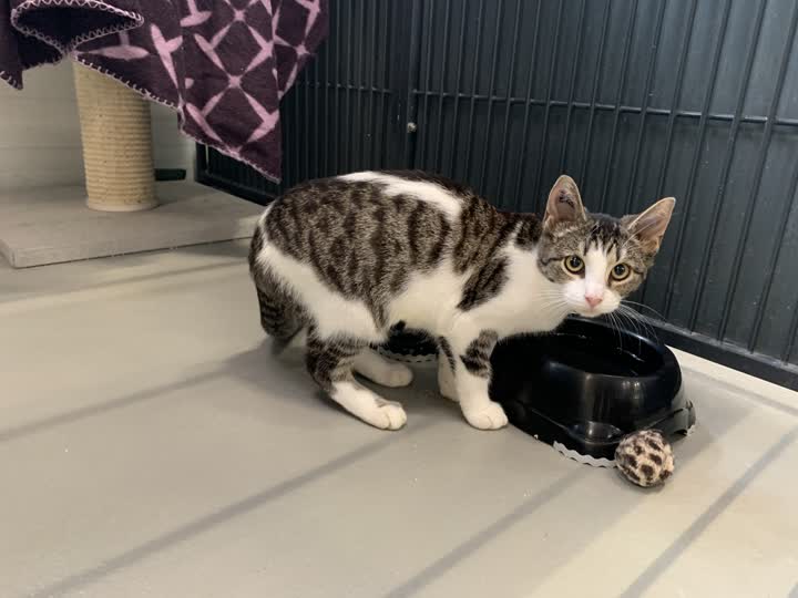 Forsigtig pige, der lige skal se tingene an. Når hun har set folk an, er hun en kærlig og legesyg kat. Hun har det godt med sin bror Nunu, og kan med fordel rejse sammen med ham. Hun skal på sigt have mulighed for at komme udenfor.