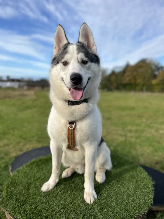 Simba er en flot fyr på 1 år - og en blanding mellem Husky og Schæfer, hvilket betyder at han er en aktiv fyr.