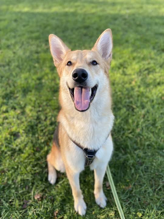 Koda er en schæferblanding, intakt han på 1 år 1 måned og vejer 27.8 kg.