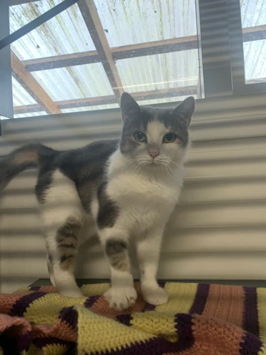 Sol er en forsigtig, men meget kælen kat. Sol skal ud til et roligt hjem, hvor hun på sigt kan komme udenfor.
