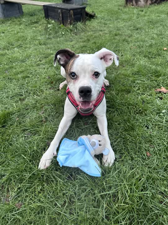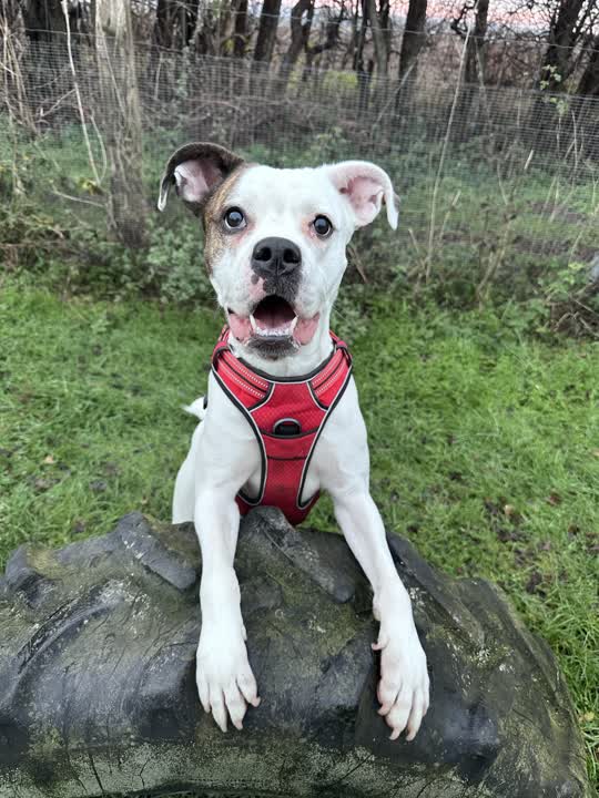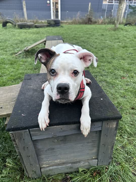Hun er en opsøgende charmetrold, som elsker med alle sine knap 27 Kg. Hun har typisk boxer sind og den energi som kendetegnes herfra, men også Rottweilerens vagtsomme sind, f.eks. ved en ukendt lyd, så siger hun til. Hun er glad for alle mennesker og er en hoppebold, præcis som en boxer skal være. Vi søger et hjem med raceerfaring, gerne boxeren, da det klart er den som skinner mest igennem. Det er særligt Solveigs energiniveau, som man skal være indstillet på at kunne imødekomme, med både fysisk og mentalt stimulerende aktivitet. Efter en god skovtur og noget træning er Solveig også klar på at putte på sofaen. Solveig har tidligere boet med kat, og det tænker vi også hun kan i nyt hjem, hvis der måtte bo sådan en. Vi søger et hjem hvor hun skal være alene hund.