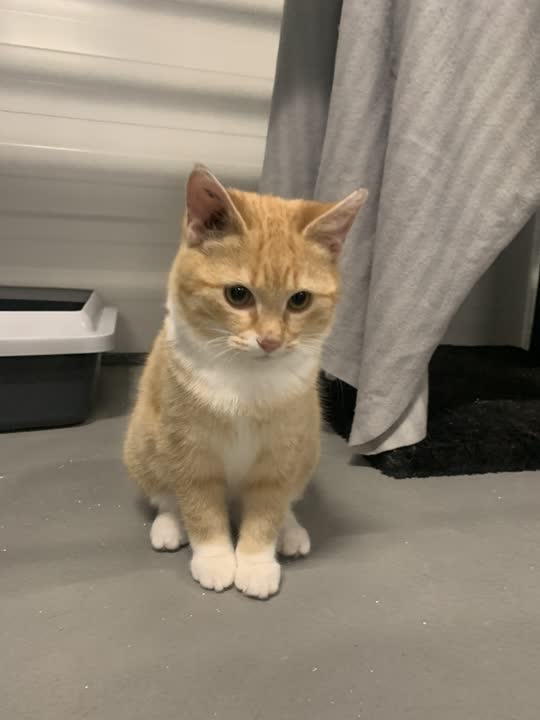 Trifli er en sød og legesyg killing. Trifli skal på sigt kunne komme ud.