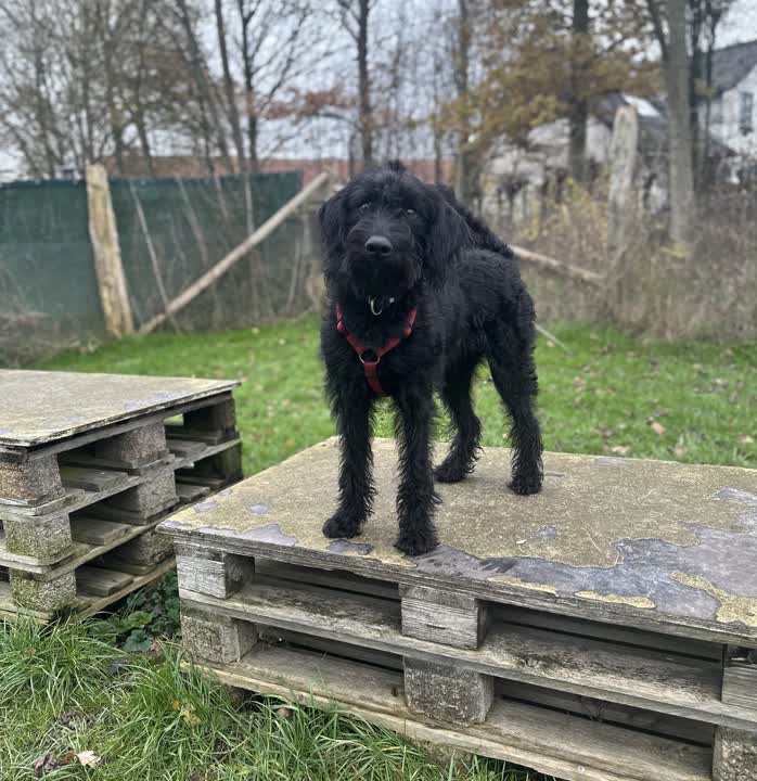Søde forsigtige Nala er rigtig træningsglad og meget lydhør, når tingene bliver taget i hendes tempo. Nala er en blanding af Labrador og pudel og vejer 26 kg. Hun er ikke en hund som kaster sig i armene på nye mennesker, men med tid og tålmodighed, så kommer hun når hun er klar og har set dig lidt an. Da hun er pudelblanding kræver hun pelspleje, samt klipning et par gange om året. Vi søger et hjem som har erfaring i hunde som kræver træning ifm. håndtering. Træningen må bygge på ro og tillid, da hun hurtigt bliver utryg ved håndtering. Nala er glad for andre hund og har et fint hundesprog. Hun er vant til at være alene hjemme nogle timer om dagen, og det tænker vi også hun kan lære igen, når hun er landet i sit nye hjem. Nalas nye hjem må være uden børn. Hun skal hjælpes ind i bilen, men nyder virkelig at komme på gåtur. Hun bruger snuden på turen og går pænt i linen, møder andre hunde og mennesker med nysgerrighed.