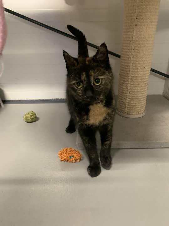 Kamille er en utrolig kærlig og nysgerrig pige, der kommer og hilser på. Kamille skal på sigt havde mulighed for at komme ud under åben himmel.