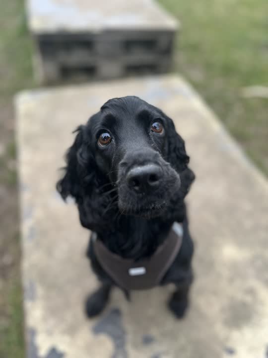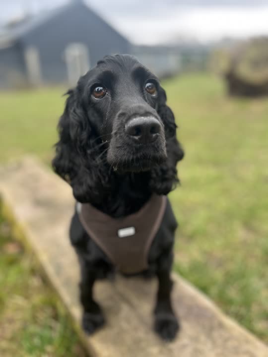Det her er Mulle – vi ved hun er en Cocker Spaniel tæve på 12 kg. og at hun fylder 2 år om få dage. Og vi ved hun har boet med en kat.