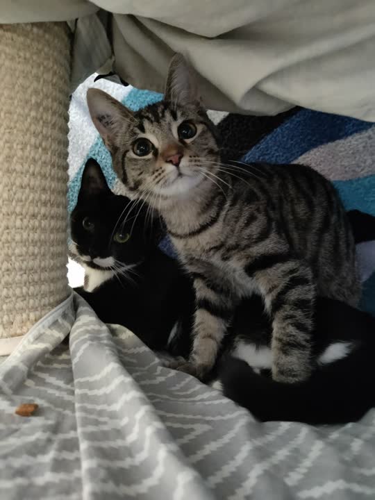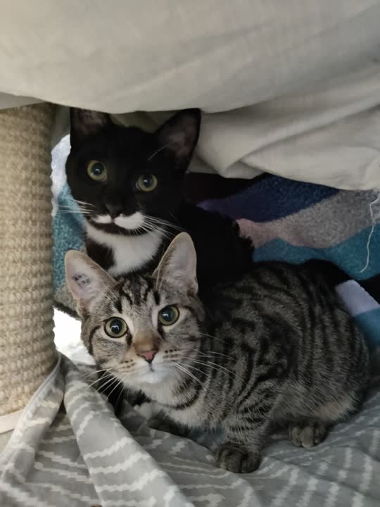 Mogens og Tutti er søskende og skal rejse sammen, da de har stor støtte i hinanden. De er begge lidt forsigtige, men nysgerrige, og vil meget gerne bestikkes med godbidder og kæl. Mogens er lidt mere fremme i skoene. Vi ønsker, at Mogens og Tutti kommer ud i et roligt hjem, uden for mange mennesker og andre dyr. Mogens og Tutti skal have mulighed for at tilvælge det fri udeliv, når de er faldet godt til i nyt hjem.