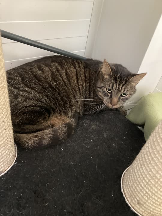 Emil er en stor flot fyr på knap 6 kg. Han er kommet ind til os, da der ikke længere var tid til ham efter en skilsmisse. Han er en kat med en stor personlighed. Han er glad for kæl på/omkring hovedet, andre steder på kroppen bryder han sig ikke om. Vores kiropraktor har mærket ham igennem, og han er præcis som han skal være. Han har boet med sin søster inden skilsmissen, og det er gået fint. Emil har lært at han skal sætte sig når han bliver fodret, så han er kvik og vil sagtens kunne lære flere tricks, hvis det bliver koblet med lækre godbidder.