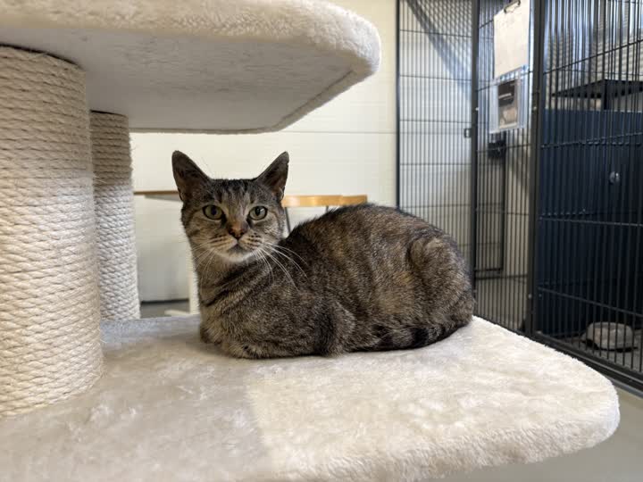 Mynte er en rigtig dejlig og legesyg kat, som lynhurtigt føler sig tilpas i hjemmet. Hun byder folk velkommen og ser gerne ethvert menneske som en ny mulighed for at blive nusset. Hun kan forveksles med en papegøje, for hendes absolutte yndlingsplads, når det er nussetid, er hængende på skulderen. Hun er meget vokal og fortæller gerne, hvornår det er tid til en godbid. Hun er ikke så glad for høje lyde såsom støvsuger, hårtørrer mm., men kan nemt lokkes frem, hvis det kører på lavt blus, og når apparaterne slukkes. Måske Mynte er vokset op blandt hunde, for når hun på sin helt egen måde opsøger kontakt og vil nusses, så ”logrer” hun med halen. Hun giver både næsekys i hele hovedet, spinder, blinker langsomt og så logrer hun med sin hale imens. Dette kan give et udtryk af at hun siger fra, men i langt de fleste tilfælde er det gode tegn. Mynte bliver din rolige følgesvend igennem livet. Hun skal have mulighed for at komme udenfor i sit nye hjem.
