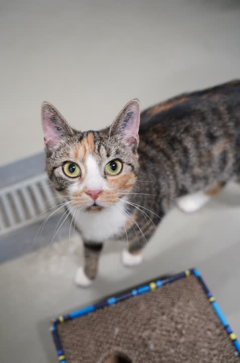 Chloe er en hunkat, da ankom til vores internat med små killinger. Chloe har siden da været i pleje med sine killinger, og er nu klar til selv at finde sig et nyt hjem. Hun er meget rolig og imødekommende kat, men hun har ikke været vant til andre katte og hunde.