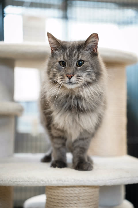 Zeus er snart 13 år, og drømmer om et dejligt kærligt hjem. Han er en langhårs blanding, og kræver derfor en del pelspleje. Han er en MEGET rolig kat. Mild også. Han er vant til både hund og børn, og utrolig nem at omgås.