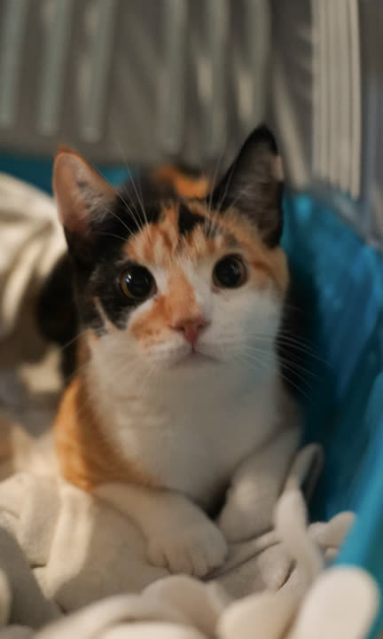 Lille Freja på fire måneder leder efter sit nye hjem. Hun er en nysgerrig og legesyg lille killing.
