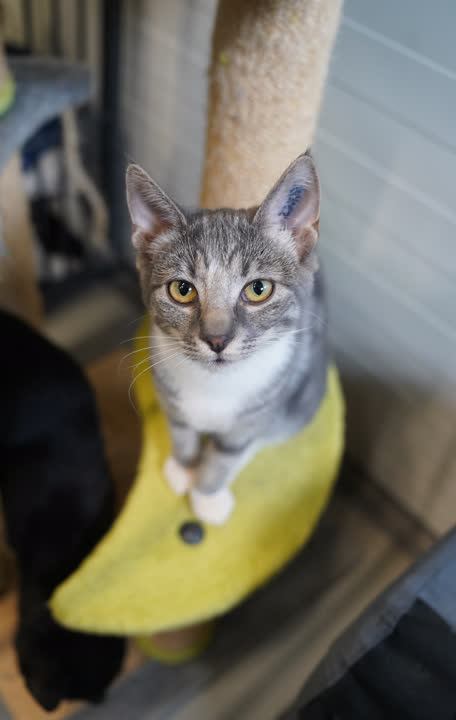 Dory er en utrolig blid og kælen killing. Hun lader til at fungere fint med de andre katte. Hun har i plejen boet sammen med en labrador, og lærte at vænne sig til. Dory har ikke været vant til børn, og hun kan virke en smule tilbageholdende til en start. Hun bryder sig ikke om hurtige og pludselige bevægelser, og vil nok trives bedst sammen med lidt ældre børn. Dodo er en sød, lidt tilbageholdende killing, men virkelig kælen og legesyg. Hun er altid der, hvor hendes mennesker er. Hun elsker at lege i sengen, når der skal skiftes sengetøj, og hun kravler gerne med ind under dynebetrækket, hvis hun kan komme til det. Dory ville både kunne bo med og uden andre dyr.