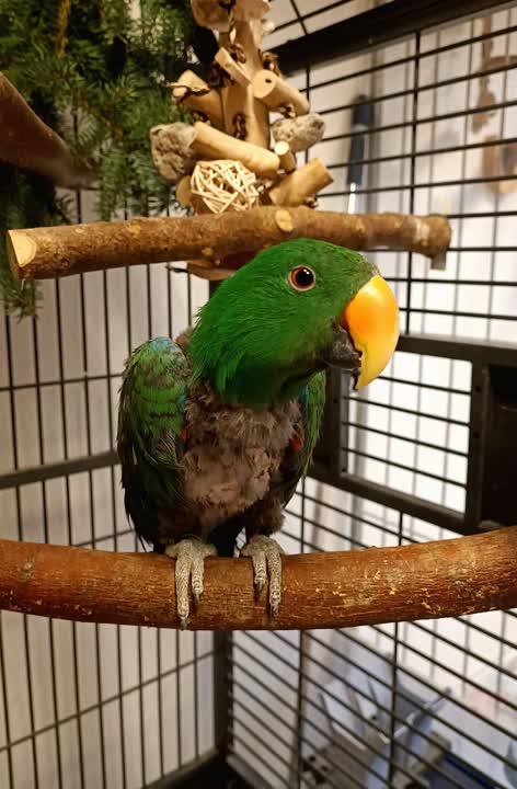 Vi har fået indleveret denne smukke ædelpapegøje Nobel, da hans tidligere ejer desværre ikke længere havde mulighed for at passe ham. Vi kender desværre ikke så meget til Nobels fortid, men han søger nu et trygt og stabilt hjem hos en ejer med solid erfaring med papegøjer – meget gerne ædelpapegøjer.