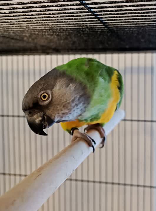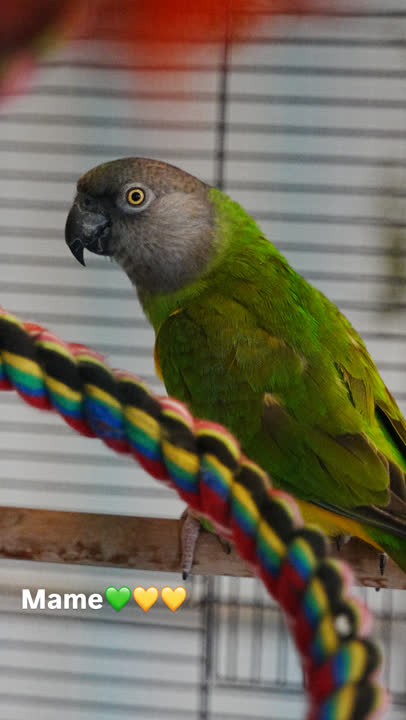 Mame er en smuk senegalpapegøje, som er kommet i vores varetægt, da hans tidligere ejer ikke længere havde mulighed for at give ham den nødvendige omsorg.