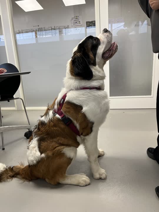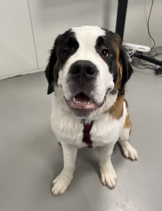 Nala er en skøn Sankt Bernhardshund på 8 måneder, der er kommet til os på grund af en skilsmisse. Hun er en stor og blid pige som elsker mennesker. Nala er legesyg og social – hun vil rigtig gerne være med, når der sker noget, og hun nyder at lege med andre hunde. Hun kan derfor godt bo med anden hund så længe det er det rette match.